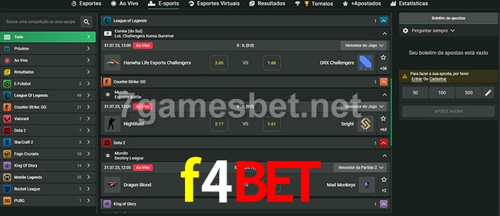 O f4bet oferece uma grande seleção de opções de apostas em e-sports com probabilidades competitivas